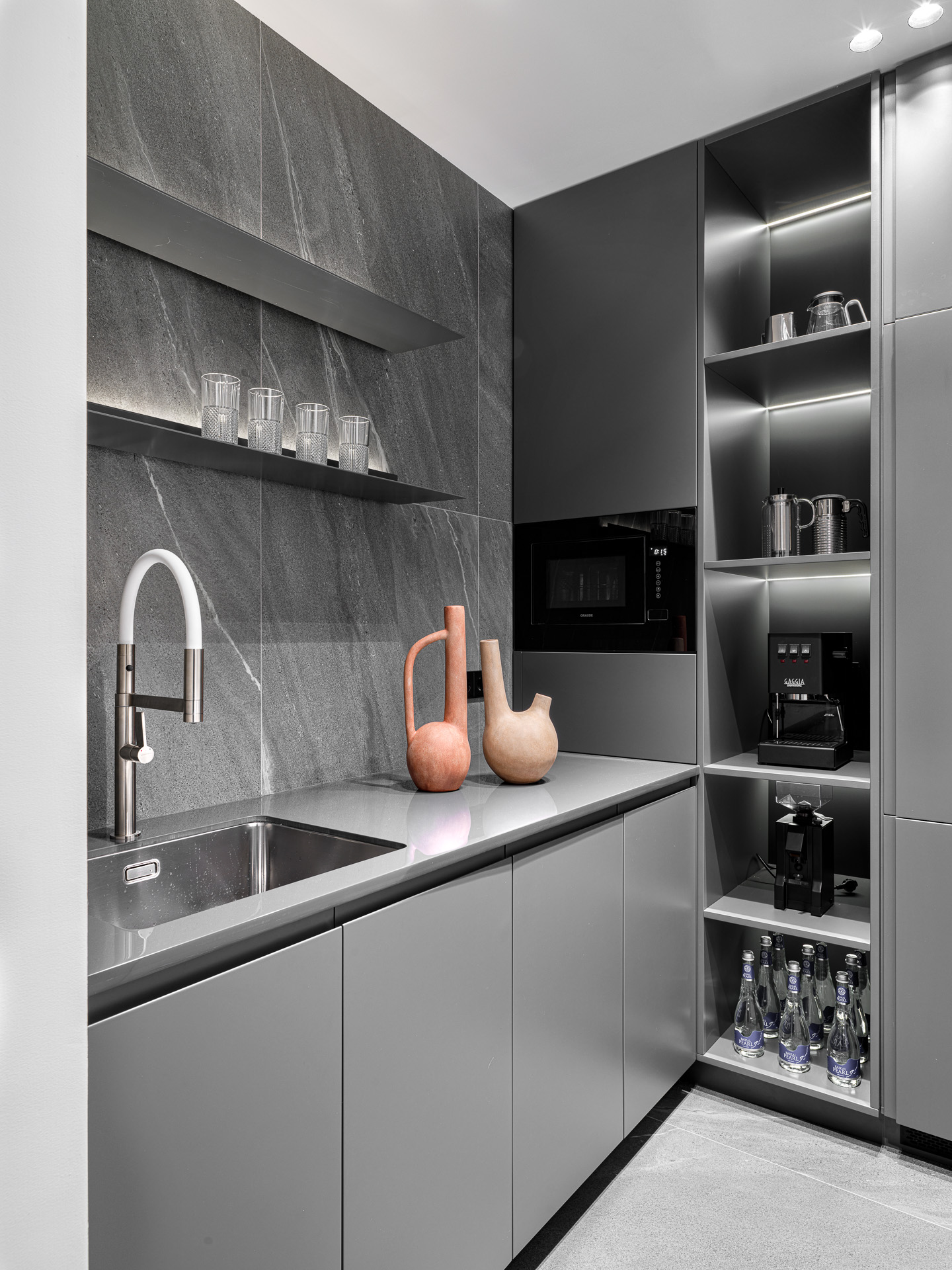 Сформировано адаптивное пространство, позволяющее экспериментировать с форматами обслуживания и подачей кухни.