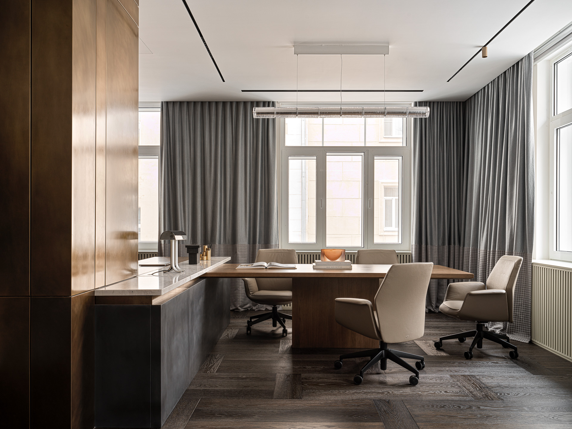 Продумать интерьер, который органично работает для разных аудиторий: динамичный формат быстрых обедов днём и более камерная атмосфера для ужинов вечером.